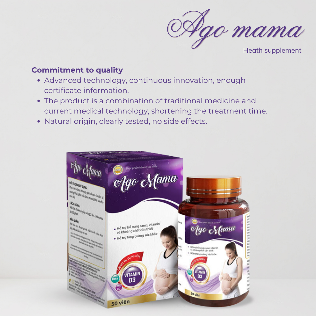 AGO Mama is a Vietnamese nutrient-rich supplement formulated to provide essential vitamins and minerals, support maternal health, and enhance the ability to conceive and carry a healthy baby.